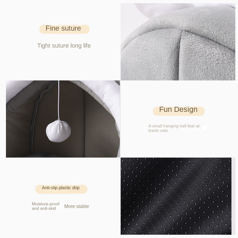 Crafted with premium breathable fabric and a plush interior cushion, this adorable cat house provides the perfect hideaway for sleeping, lounging, or simply relaxing. The semi-enclosed dome design offers privacy and warmth, mimicking a natural den that helps your pet feel safe and protected.